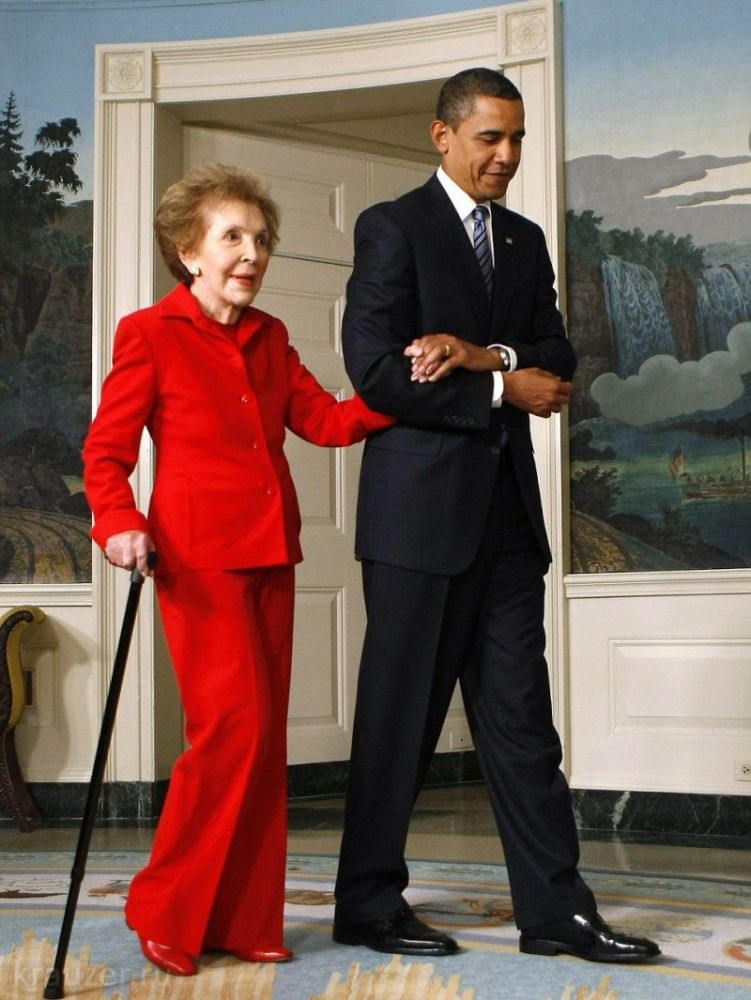 Первая леди США, супруга 40-го президента США Рональда Рейгана. Она была первой из жен президентов США, которая показала, что стиль одежды может стать политическим заявлением, чем теперь активно пользуются первые леди и дизайнеры, которые их одевают.
