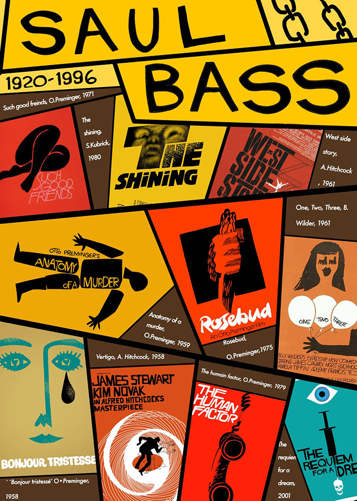 Для Альфреда Хичкока Басс создал незабываемые заставки, используя кинетическую типографику, для фильмов "К северу через северо-запад", "Головокружение" и "Психо". Именно эти революционные работы и сделали Сола почитаемым графическим дизайнером.