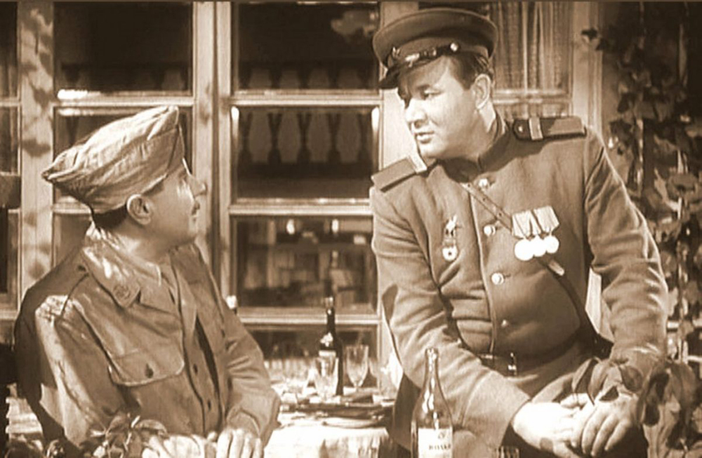 Началась Великая Отечественная война. Осенью 1941 года всех сотрудников киностудии "Мосфильм" эвакуировали в Среднюю Азию. Перед режиссерами того времени стояла задача снимать кино, которое поднимало бы боевой дух солдат. В 1942 году Леонид Луков приступил к съемкам картины "Два бойца". Сценарий фильма о фронтовой дружбе написали по повести Льва Славина "Мои земляки". На главную роль Саши Свинцова Бориса Андреева одобрили сразу. Специально для картины композитор Никита Богословский сочинил знаменитые военные песни "Темная ночь" и "Шаланды, полные кефали". В октябре 1943 года ленту показали солдатам на передовой.