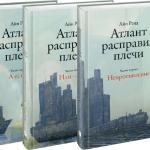 В 1937 году она написала небольшую повесть "Гимн", которая в 1938 году вышла в Великобритании. Второй крупный роман "Источник" вышел в 1943 году, а третий - "Атлант расправил плечи" - в 1957 году. После "Атланта" Рэнд начала писать философские книги: "Для нового интеллектуала" (1961), "Добродетель эгоизма" (1964), "Капитализм: неизвестный идеал" (1966), "Новые левые: антииндустриальная революция" (1971), "Введение в философию познания объективизма" (1979), "Философия: кому она необходима" (1982) и многие другие, а также читать лекции в американских университетах.