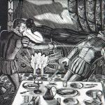 В 1948-1953-х годах Фаворский как "идеолог формализма" был отлучен от преподавания, лишен элементарного заработка. Но и в это время - едва ли не самое тяжкое для русской культуры - Фаворский напряженно работал; делал превосходные книги: "Сонеты Шекспира", "Роберт Бернс" в переводах С. Маршака; рисовал карандашом парные портреты.