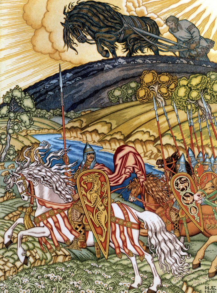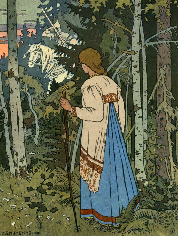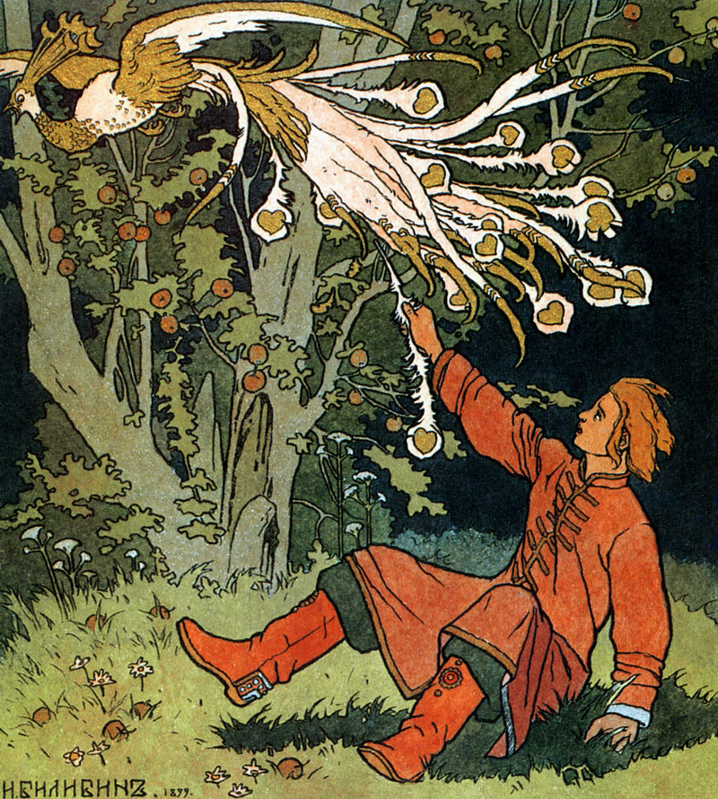 В 1899 году на всё лето художник отправляется в гости к своему товарищу по университету в усадьбу Егны. Результатом этой поездки становятся первые иллюстрации к русским народным сказкам: "Сказка об Иване-царевиче, Жар-птице и о Сером волке", "Царевна-лягушка", "Перышко Финиста Ясна – Сокола", "Василиса Прекрасная".