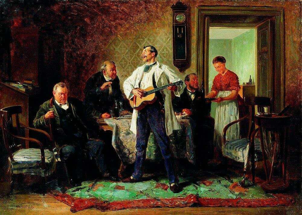 Жанровые картины Владимира Маковского принадлежат к числу наиболее типичных, хрестоматийных образцов искусства "передвижников". Со временем в тонких психологических мизансценах Маковского все явственней проступала тема "униженных и оскорбленных" ("Посещение бедных", 1874, Третьяковская галерея).