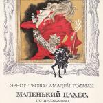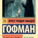 Среди самых известных произведений Гофмана - новелла "Золотой горшок", сказка "Крошка Цахес по прозванию Циннобер", сборники "Ночные рассказы", "Серапионовы братья", романы "Житейские воззрения кота Мурра", "Эликсир дьявола", "Повелитель блох".