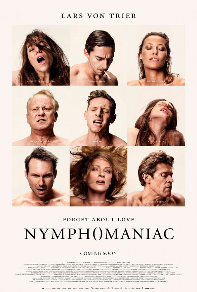 Премьера фильма Триера "Нимфоманка" состоялась в конце 2013 года. В главных ролях: Шарлотта Генсбур, Удо Кир, Стеллан Скарсгард, Жан-Марк Барр и Уиллем Дефо.