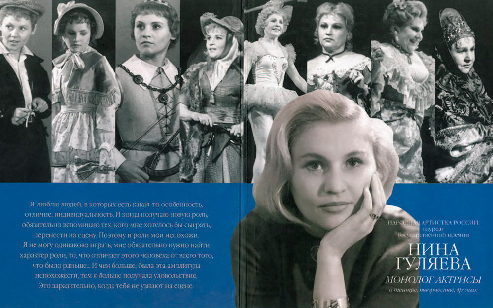 Рекомендуем вам книгу "Нина Гуляева. Монолог актрисы", которая размещена в онлайн-библиотеке МХТ. Рассказ Нины Ивановны записал Виктор Гвоздицкий, замечательный артист, ее партнер по мхатовской сцене и человек яркого литературного дарования. Читайте по ссылке.