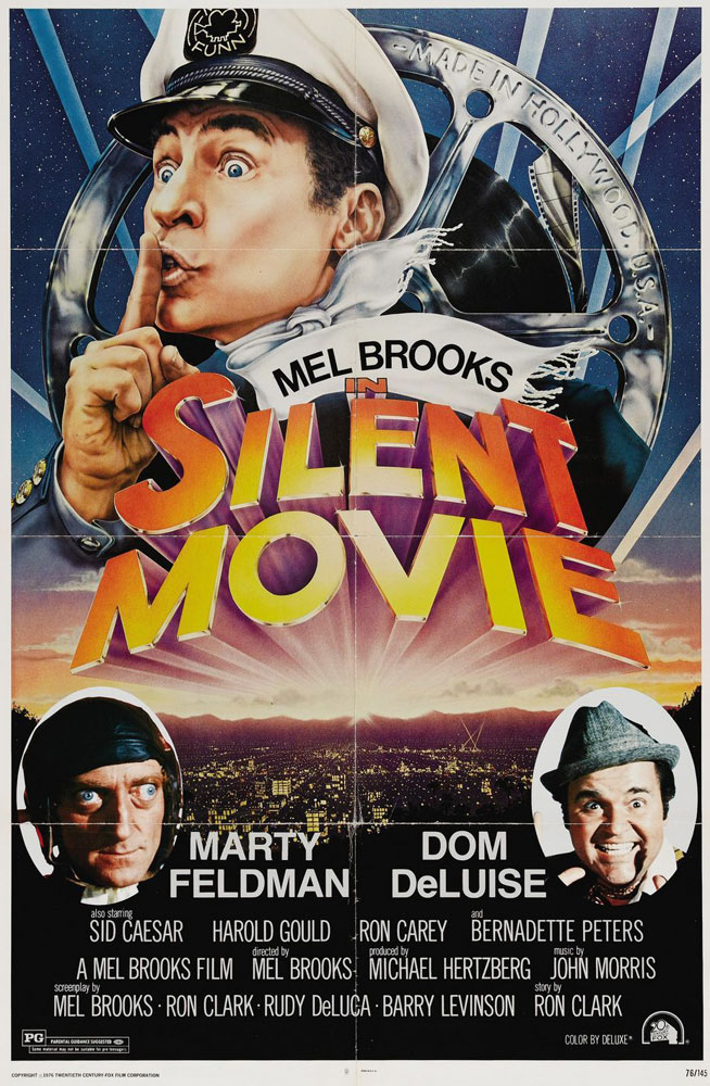 Следующим был эксперимент со звуком - "Немое кино" (1976): фильм, созданный по канонам немого кино, в детстве так любимого Бруксом. Далее он снял ещё несколько пародий: "Страх высоты" (1977) (на триллеры Альфреда Хичкока), "Всемирная история, часть первая" (1981) (на исторические фильмы), "Космические яйца" (1987) (на "Звёздные войны" Джорджа Лукаса, "Звёздный путь" Джина Родденберри и "Чужих"), "Робин Гуд: Мужчины в трико" (1993) (на блокбастер "Робин Гуд: Принц воров") и "Дракула: Мёртвый и довольный" (1995) (на фильмы о графе Дракуле и роман Брэма Стокера). Также Мел Брукс снял фильм: "Жизнь - дерьмо" (в другом переводе "Деньги не пахнут", 1991).
