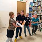 В конце акции команды получили сложное задание, надо было разыграть сценку "Богатырь пришел учиться в современную школу". Дети проявили удивительную творческую фантазию: задавали ему задачки, учили его новым словам, даже вызвали родителей богатыря в школу за недостойное поведение на уроке физкультуры.