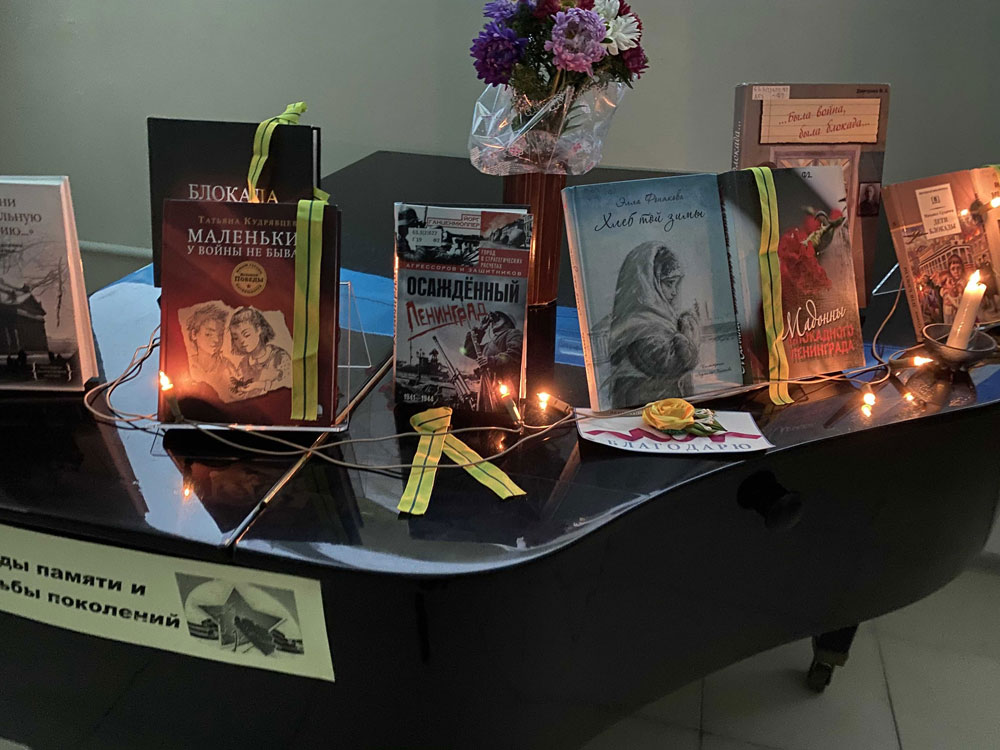 В рамках акции, зрители увидели отрывки из документальных фильмов "Ленинградский метроном" и почтили память погибших во время блокады минутой молчания. Витринная выставка "Зеркало памяти" не оставляла равнодушными читателей всех возрастов, помогая преемственности поколений и рассказывая юным петербуржцам о героической истории родного города.