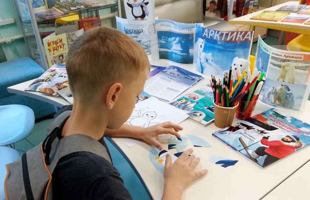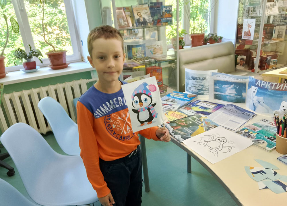 В ходе мероприятия была прочитана ненецкая сказка "Два медведя". Наши юные читатели сложили веселый пазл "Пингвинёнок" и познакомились с книжной выставкой, на которой были представлены издания об Арктике и Антарктиде.