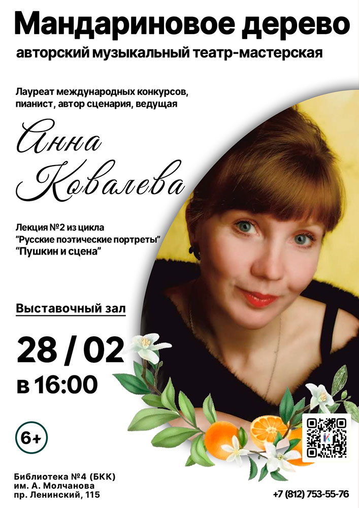 Авторский музыкальный театр-мастерская "Мандариновое дерево": Лекция "Пушкин и сцена" (6+)