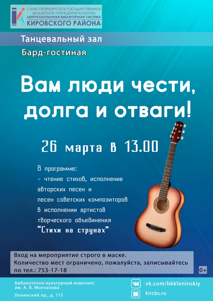 Бард-гостиная "Вам люди чести, долга и отваги!" (0+)