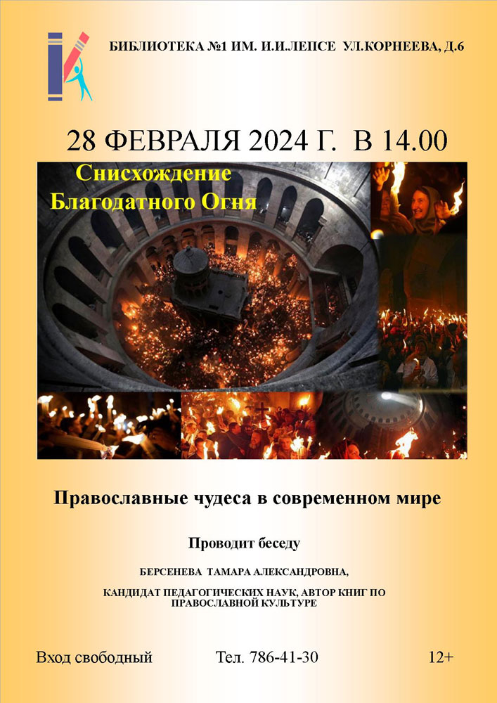 Библиотека №1 им. И. И. Лепсе приглашает на Беседу "Православные чудеса в современном мире" в рамках программы "Духовное возрождение. Основы православной веры и культуры".