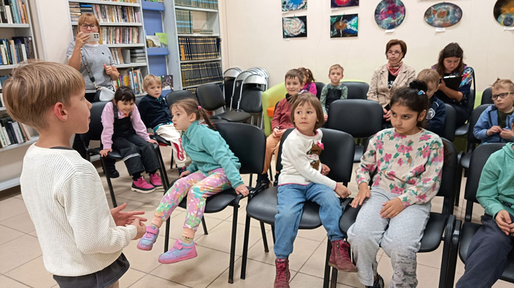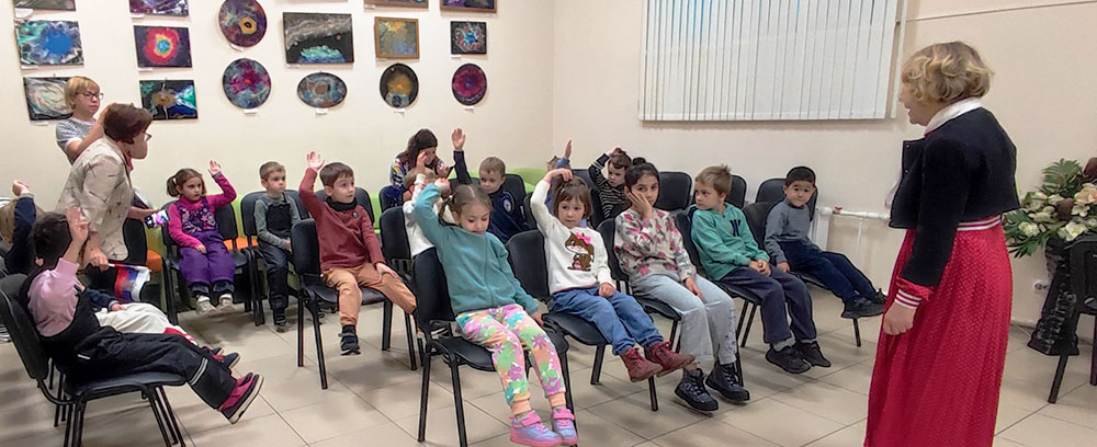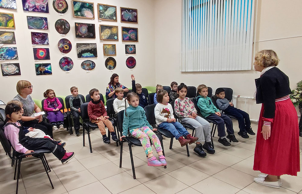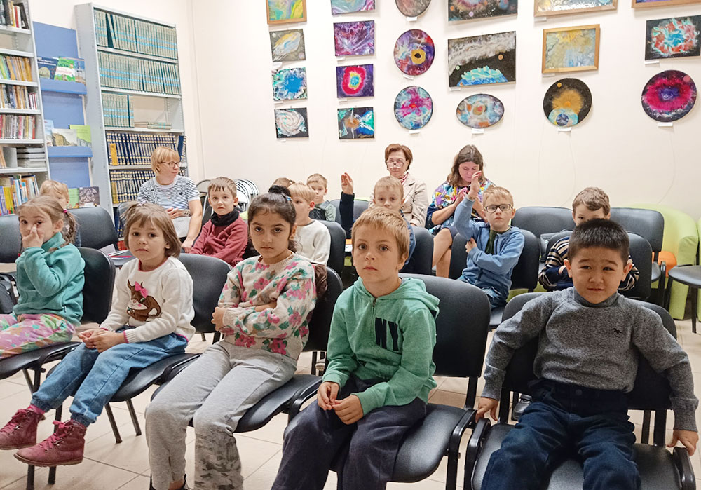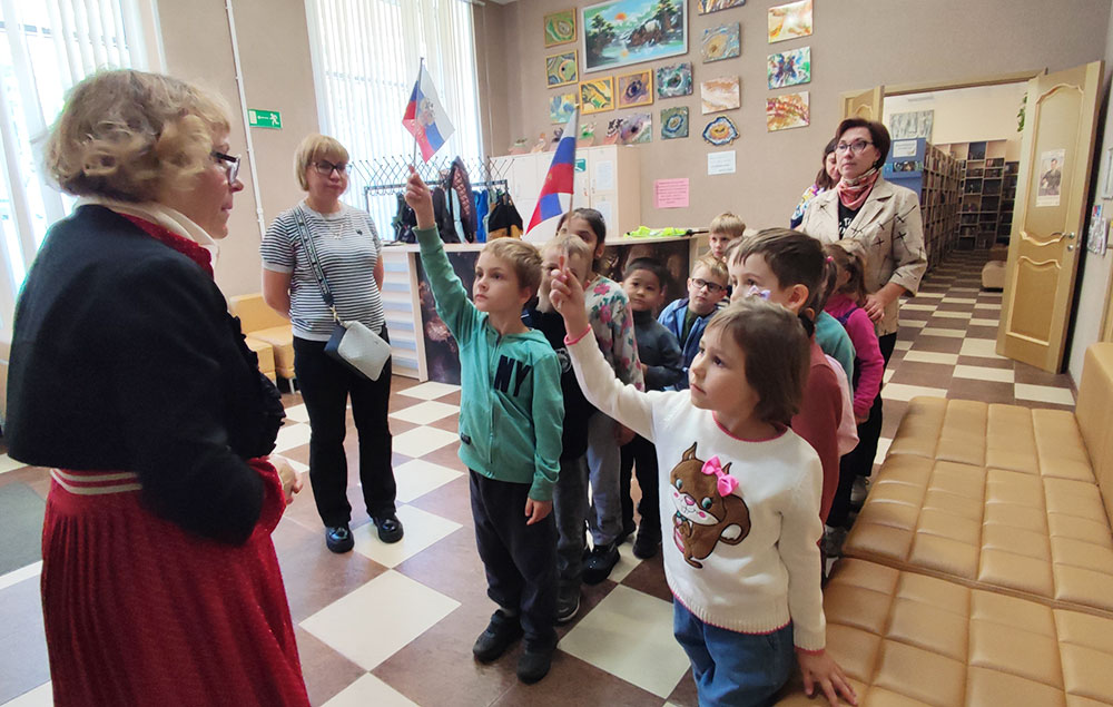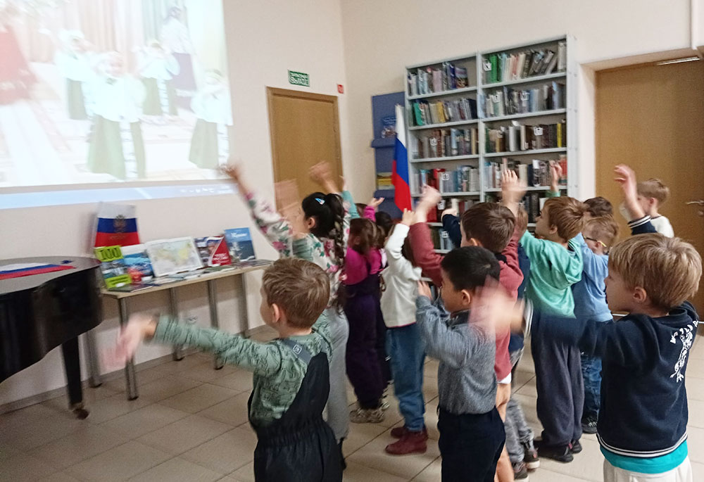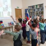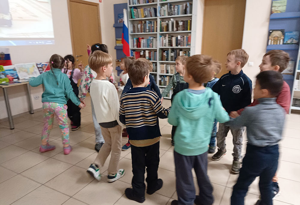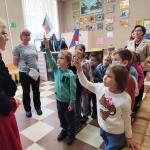 Ребята активно отвечали на вопросы викторины "Необъятная Родина", а завершилось путешествие знакомством с выставкой "Самые красивые места России".