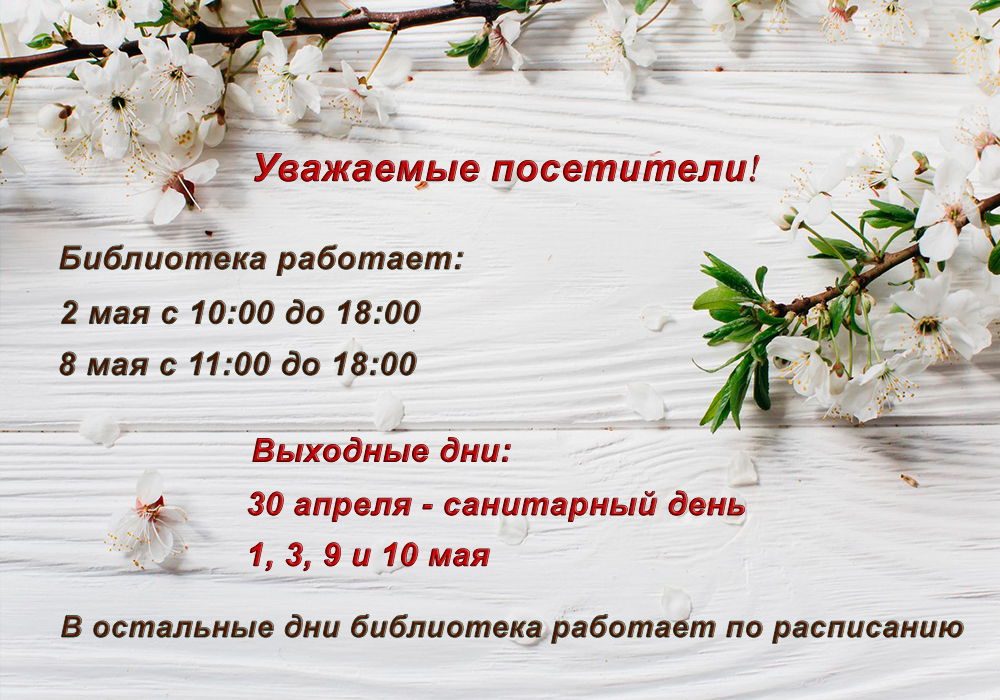 Литература выдается читателям на дом на срок до 30 дней. Продление сроков пользования осуществляется по телефону: (812) 786-41-30, при личном посещении или через услугу "Виртуальное продление".