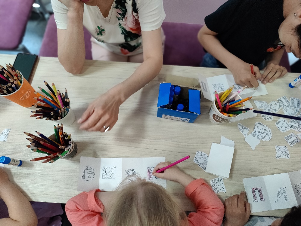 Закончилось мероприятие просмотром отрывков из мультипликационного фильма "История рождения славянской письменности" и творческой работой-раскраской "АзБуки".