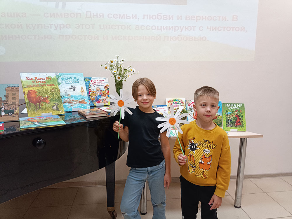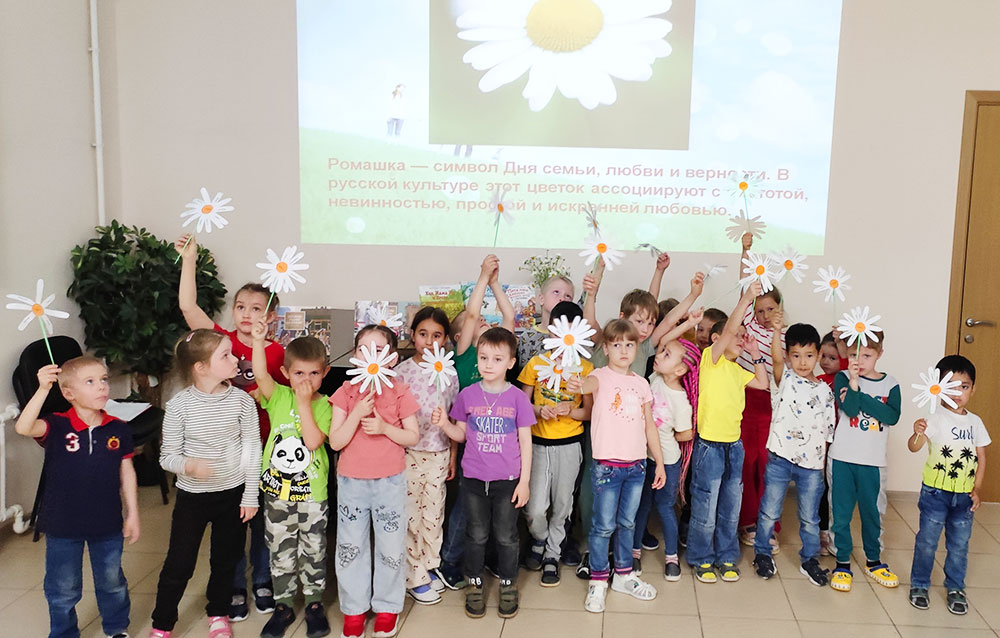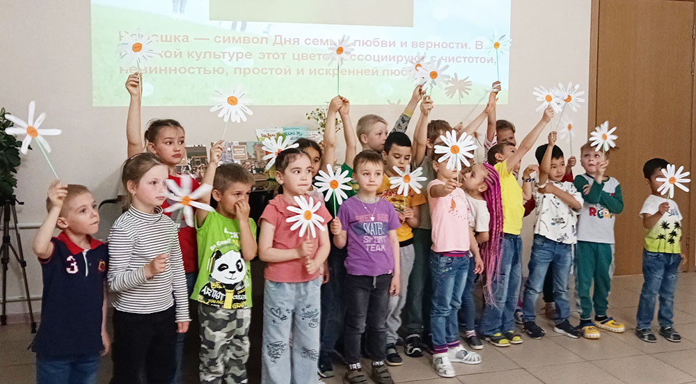 Ребята ответили на вопросы викторины "Моя семья", рассказали о своих любимых мамах и папах, поделились своими семейными традициями, а самое главное, - дети сами сделали "Ромашку счастья", которую они подарят своей семье. Этот цветок - символ праздника, в русской культуре ассоциируют с чистотой, невинностью, простой и искренней любовью. Ромашка - самый жизнерадостный и жизнеутверждающий полевой цветок, который символизирует чистую и искреннюю любовь.