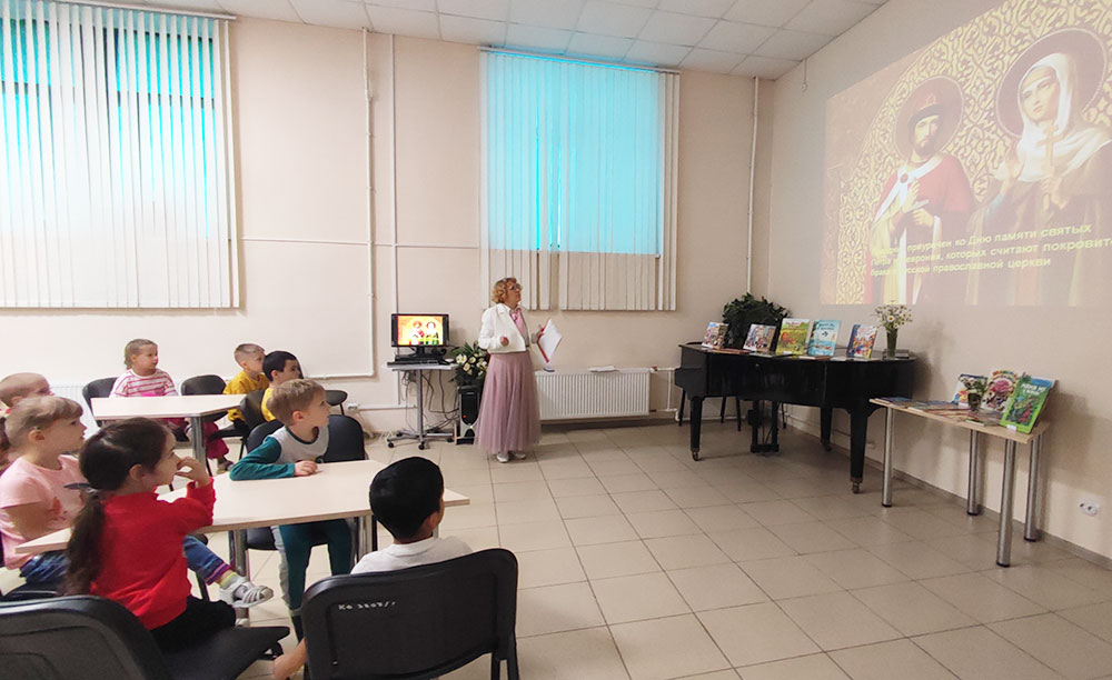 История появления праздника связана с днем памяти святых Петра и Февронии, который отмечают 8 июля. Информационная презентация "История любви" познакомила ребят с земной жизнью князей Муромских, они узнали о чудесных деяниях Петра и Февронии, что в жизни благоверных князей воплотились черты, которые в России всегда связывались с идеалом супружества, - благочестие, взаимная любовь, верность, милосердие.