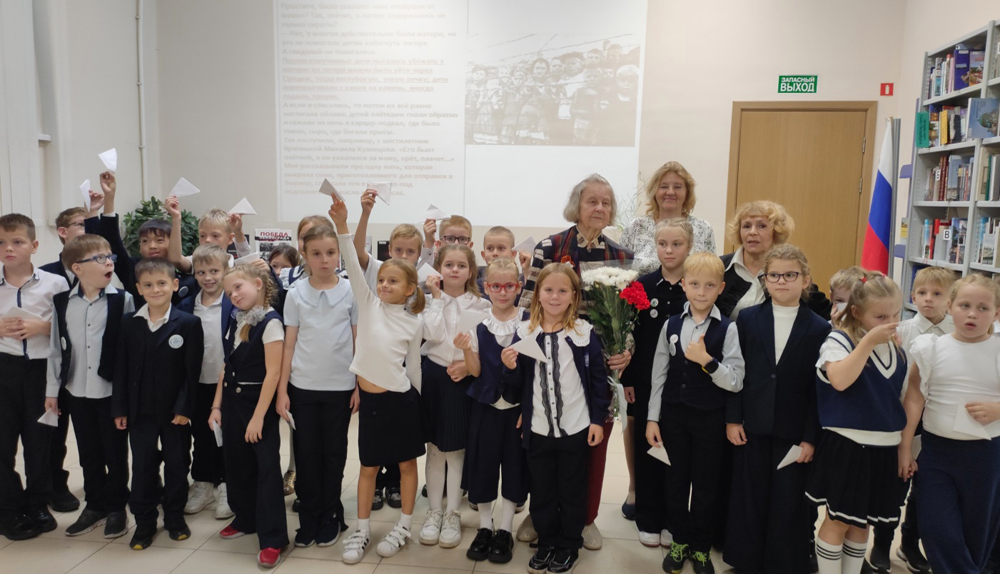 Лицеисты познакомились с выставкой "В книжной памяти мгновения войны" и получили в подарок книги Н. В. Ефремовой с дарственной подписью. На выставке были представлены настоящие письма-треугольники времен Великой Отечественной войны, и на мастер-классе ребята своим руками сделали подобные.