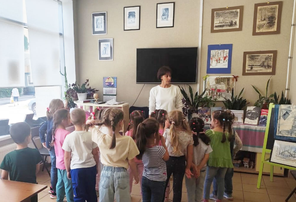 Гостей и юных читателей библиотеки ожидало открытие выставки детского рисунка "Город-Герой Ленинград" с обзором и кратким сообщение о представленных работах. Ребята из Детского сада №19 не только с огромным интересом рассматривали работы детской студии, но и принесли с собой на мероприятие рисунки на тему "Блокады Ленинграда" и "Ленинградской битвы", которые оформят витринную выставку библиотеки "Великая Победа. Страницы истории".