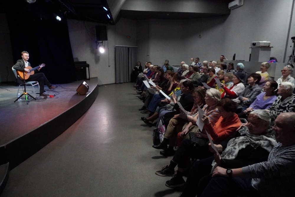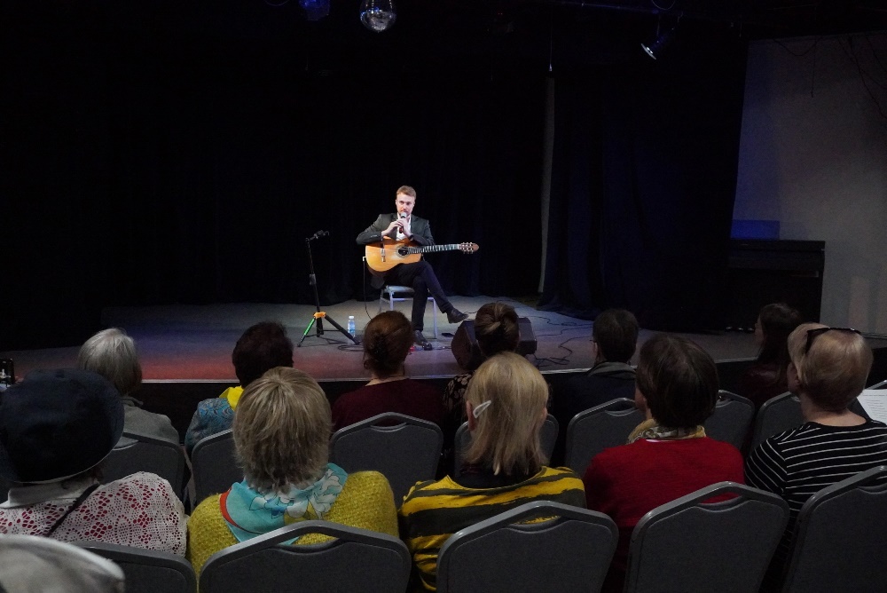На встрече присутствовало 84 зрителя. Это посетители культурных проектов библиотек Кировского района, поклонники Алексея Носова и любители гитарной музыки.