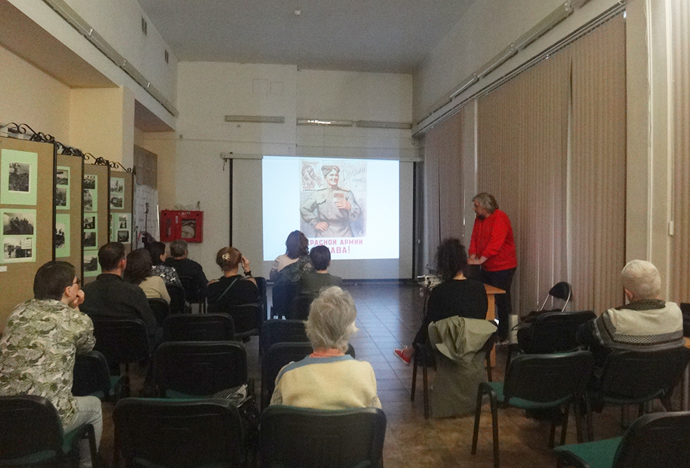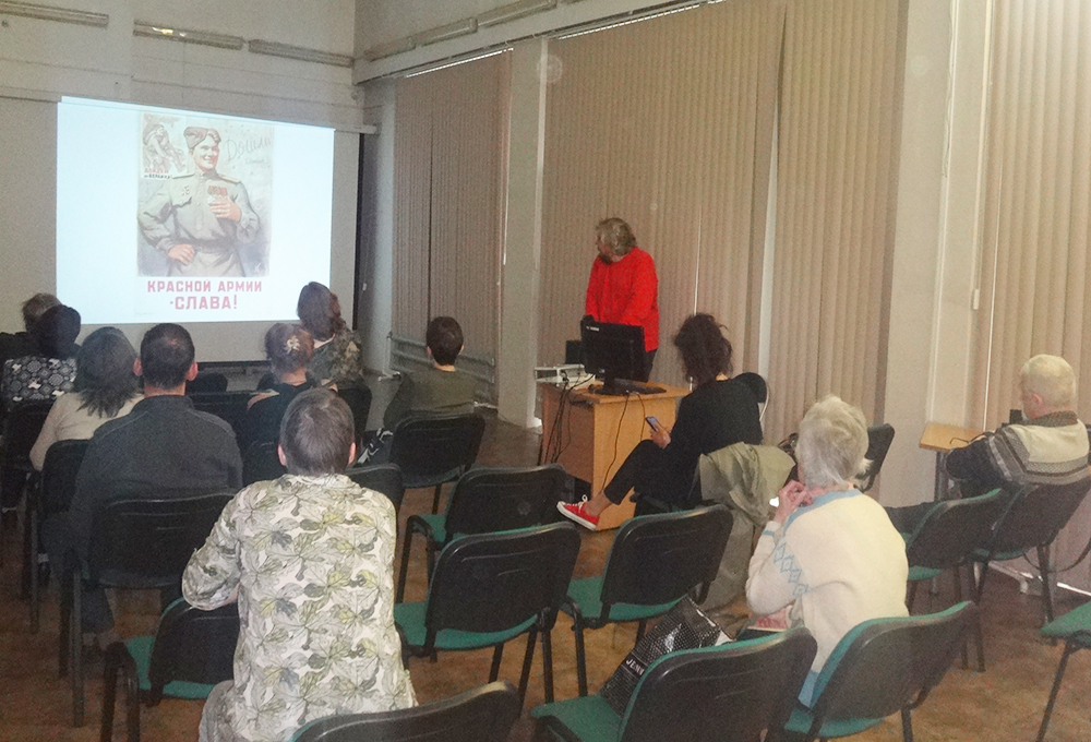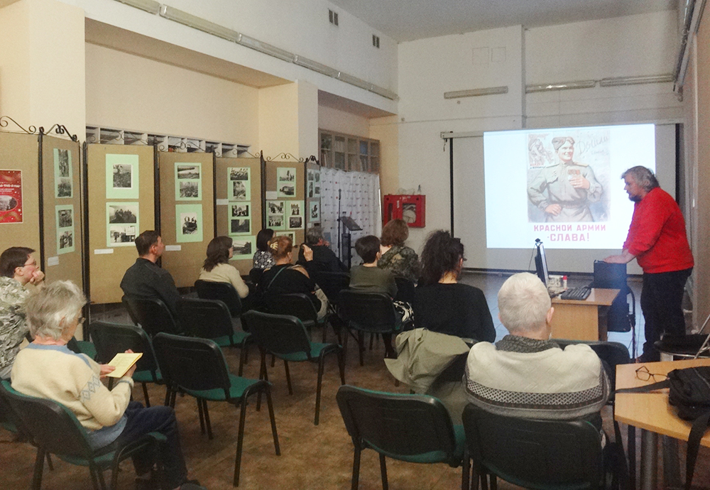 Посетители лекции узнали о разных аспектах связанных с фронтовой повседневностью бойца Красной армии. В ходе рассказа сотрудника библиотеки А. А. Кулика у гостей библиотеки сложилась картина солдатского досуга, о том, что входило в солдатский рацион, кроме щей и каши. Особым был рассказ о том, как по отличиям на униформе фронтовики могли многое рассказать друг о друге.