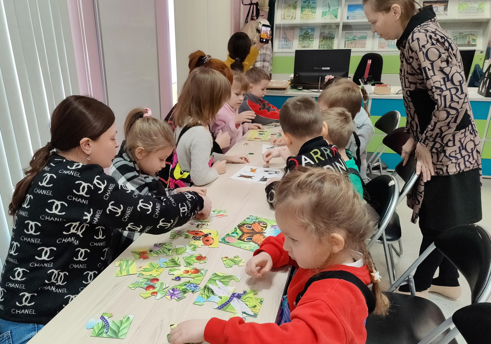 В рамках акции состоялось знакомство с творчеством замечательной писательницы, биологом Ниной Михайловной Павловой, книги которой помогают приобщению детей к бережному отношению к природе с самого детства. Далее ребята разгадали загадки о животных и растениях и сыграли в паз-игры "Найди тень животного" и "Заплатки".