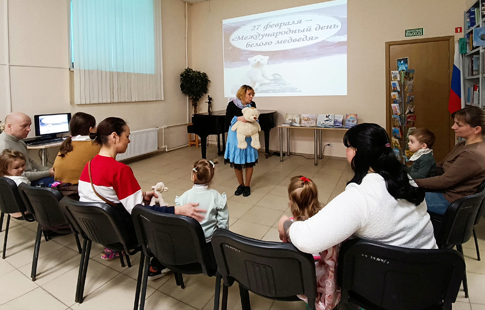 26 февраля в Библиотеке №2 прошел Экологический час "В гостях у Белого медведя" с детьми и родителями из Центра социальной реабилитации инвалидов и детей-инвалидов Кировского района Санкт-Петербурга.