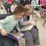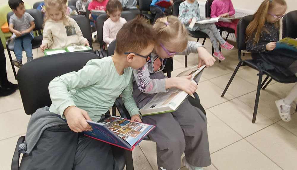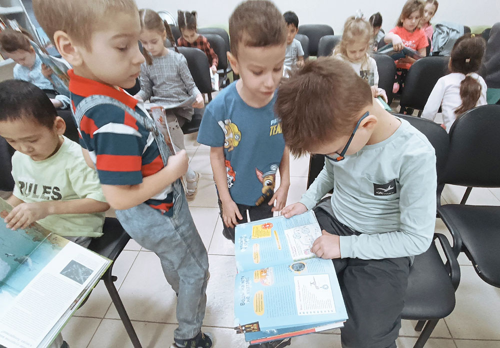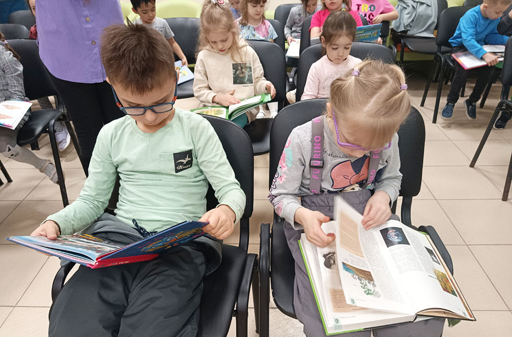 Особенный интерес вызвала книжная выставка "Земля наш дом и не одни мы в ней живём", малыши делились впечатлениями друг с другом.