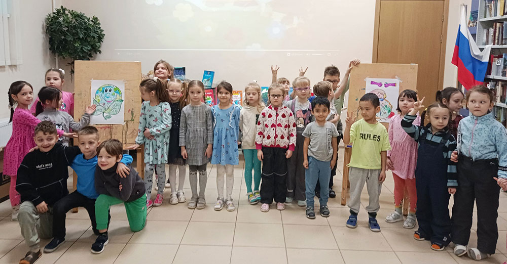В программе библиотеки малыши учились сортировать мусор, в отдельные коробки складывали пластик, стекло, бумагу и дерево. Ребятам очень понравился экологический мультфильм "Мальчик и Земля". Дети нарисовали нашу Планету и решили: "Будем же беречь нашу Землю!"
