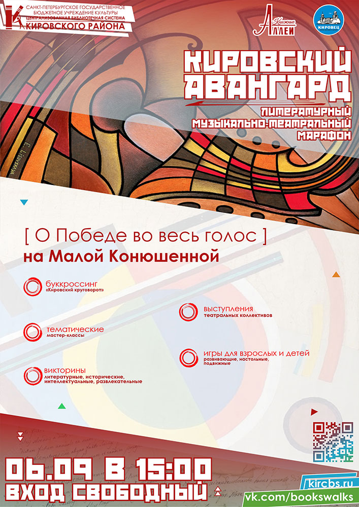 Приглашаем жителей Кировского района, Санкт-Петербурга, а также гостей города к участию в VII литературном марафоне "Кировский авангард" в рамках фестиваля Летние "Книжные аллеи" - читального зала, книжного магазина и культурного пространства под открытым небом.