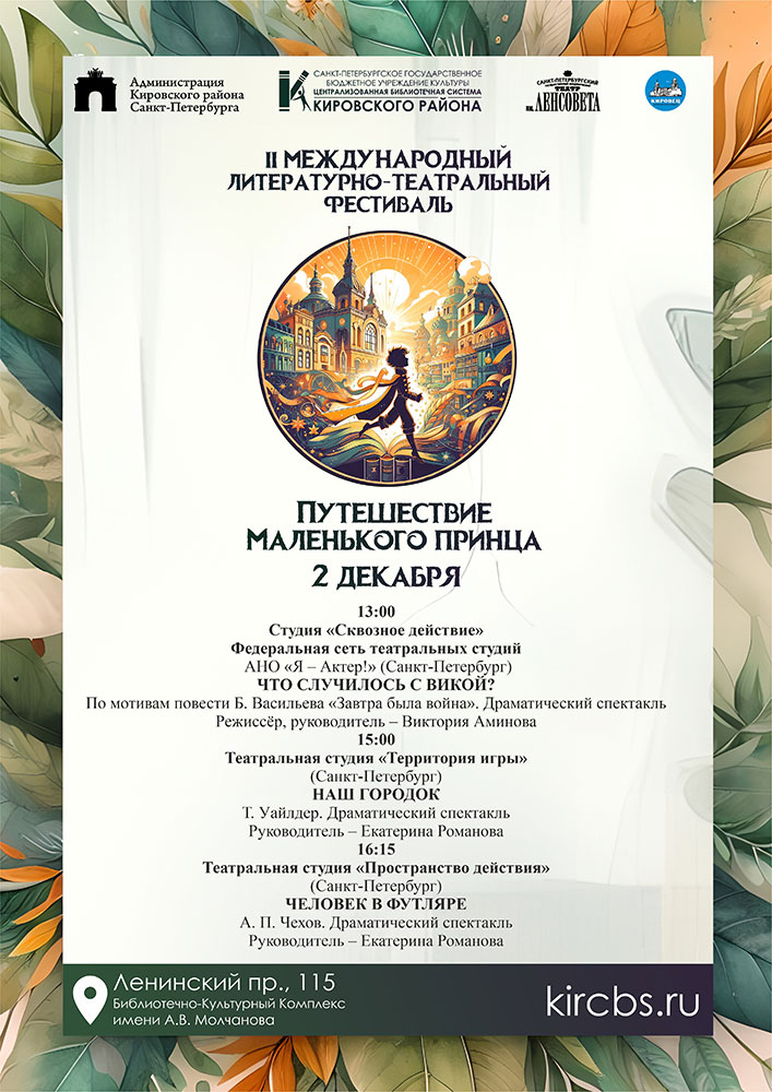 2 декабря в 13.00 на сцену Библиотечно-концертного комплекса им. А. Молчанова выйдут ребята из студии "Сквозное действие" (Санкт-Петербург) Федеральной сети театральных студий АНО "Я - Актер!".