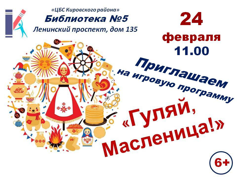 В последние зимние дни для читателей и гостей библиотеки будет представлена информационная презентация "Праздничные традиции Руси". В рамках программы все желающие смогут принять участие в традиционных играх и развлечениях "Сковорода", "Бирюльки", "Парочки".