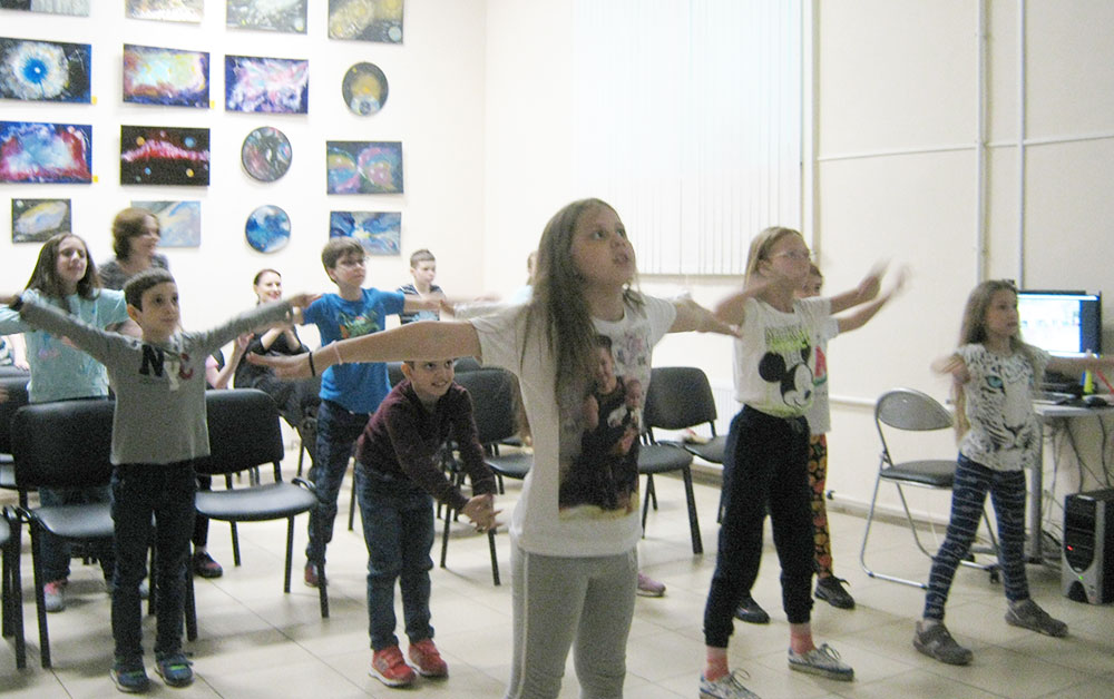 Мультфильм "Зарядка для хвоста" рассказал детям, что упражнения могут быть для кого угодно и для чего угодно. Ты можешь делать зарядку даже, если у тебя четыре ноги и хобот или вовсе ни одной ноги, а есть только хвост. И в завершении ребята сами вышли на "Весёлую зарядку". Пять минут разминки под задорную песенку еще больше подняло общее настроение.