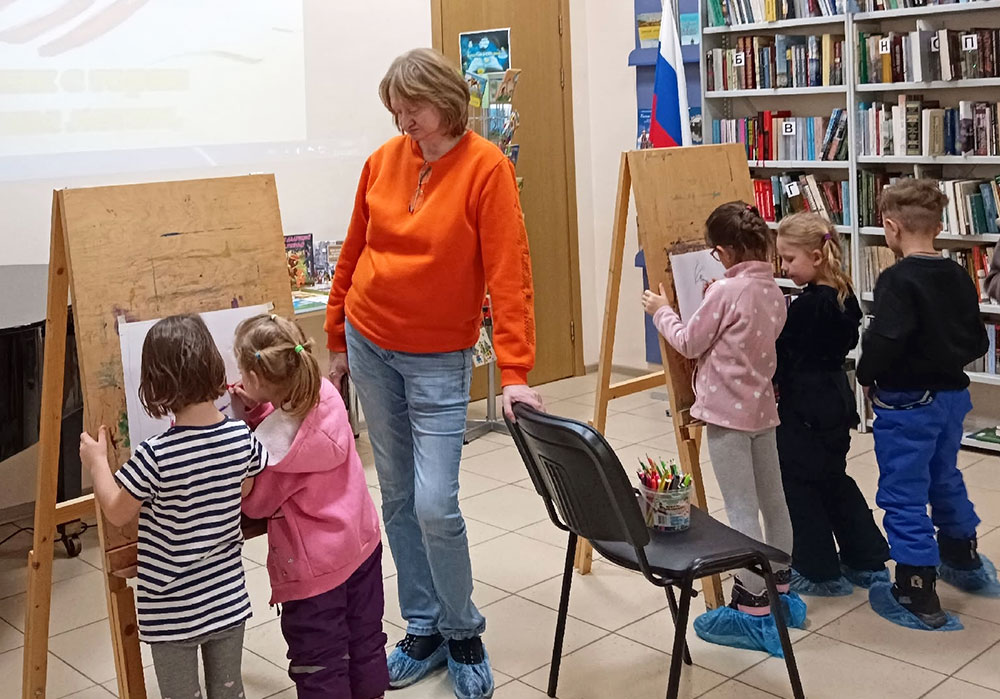 Малыши послушали "Бабушкины сказки" и познакомились с книжно-иллюстративной выставкой "Семейное счастье", а в конце встречи создали портрет семейного очага.