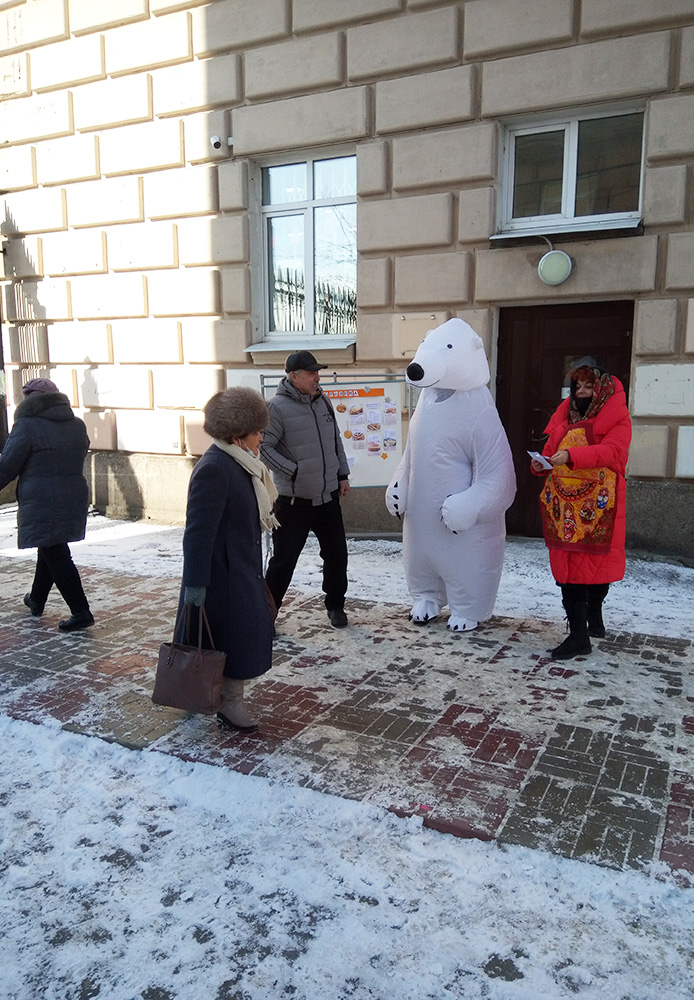 Уже полюбившийся жителям Автово Медведь зазывал гостей в библиотеку, где их ждал просмотр презентации с рассказом о традициях праздника, книжная выставка с рецептами блинов и игры-викторины "Доскажи пословицу" и "Допой частушку".
