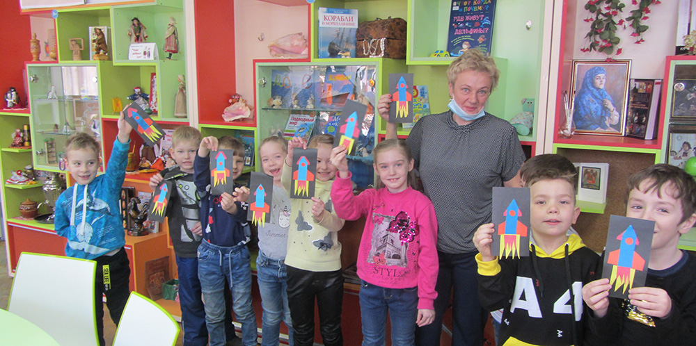 Каждый участник, мог почувствовать себя космонавтом, сфотографировавшись в образе космического пилота. Участники мастер-класса "Вперед к звездам" из цветной бумаги и картона изготовили книжную закладку в виде космической ракеты. Книжно-иллюстративная выставка "Дорога в космос" понравилась, и многие взяли домой книги о космосе.