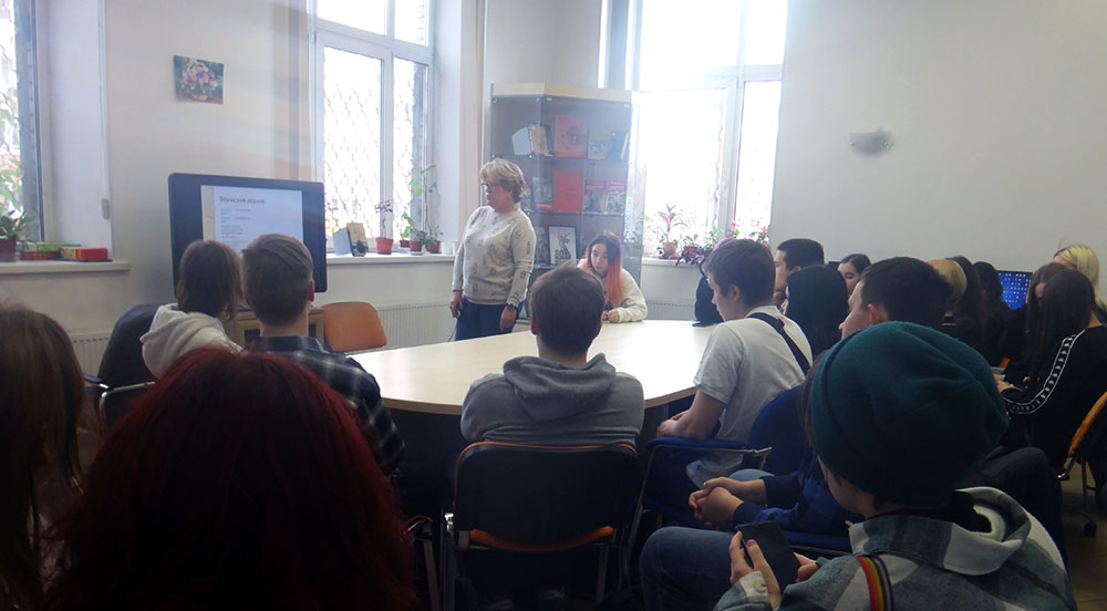 Для учащихся "Академии реставрации и дизайна" была показана информационная презентация "Полководческий талант Л. А. Говорова". Вспомнили памятники, посвященные Л. А. Говорову в Кировском районе. Понравившиеся книги можно было взять на выставке "Ни дня без Победы".