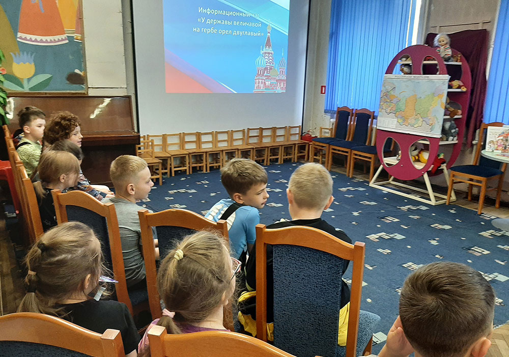 10 июня Детская библиотека №6 провела Информационный час "У державы величавой на гербе орел двуглавый".