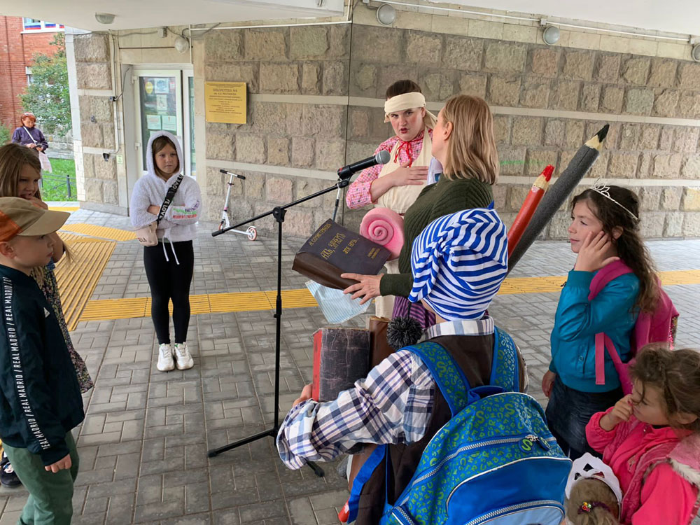 31 августа для детей и их родителей на площадке перед Библиотекой №4 (Библиотечно-культурный комплекс) им. А. В. Молчанова состоялась Интерактивная программа "Сказочный кавардак", посвященная празднованию Дня знаний - 1 сентября.