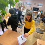Далее состоялась интерактивная игра "Выборы", где ребята разделились на две партии, придумали им названия и предвыборную программу, выдвинули по три кандидата от каждой партии. Кандидаты озвучили свою программу, самый убедительный и активный кандидат был выбран лидером от своей партии. Далее состоялись дебаты лидеров партий, по результатам которых ребята-избиратели проголосовали за понравившегося кандидата.