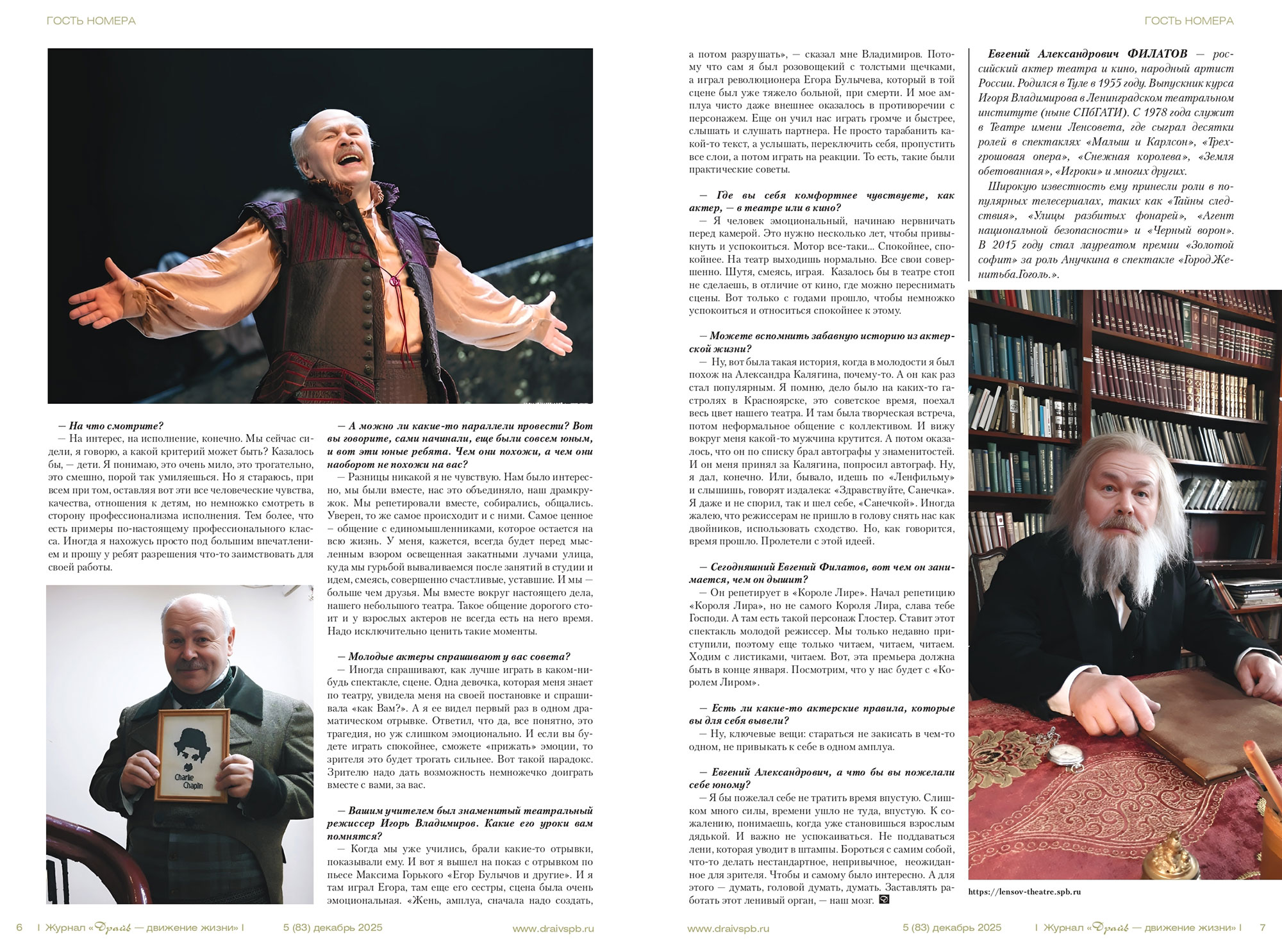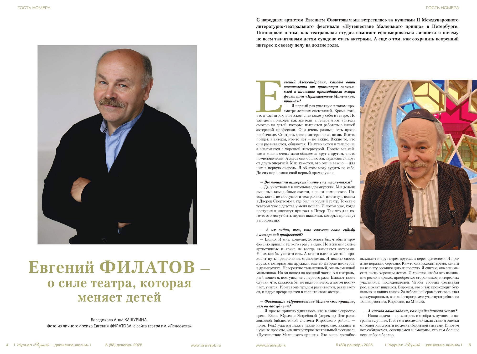 На этой неделе выходит из печати декабрьский номер глянцевого журнала "Драйв - движение жизни" с большим интервью народного артиста России Евгения Филатова, председателя жюри II Международного литературно-театрального фестиваля "Путешествие Маленького принца".