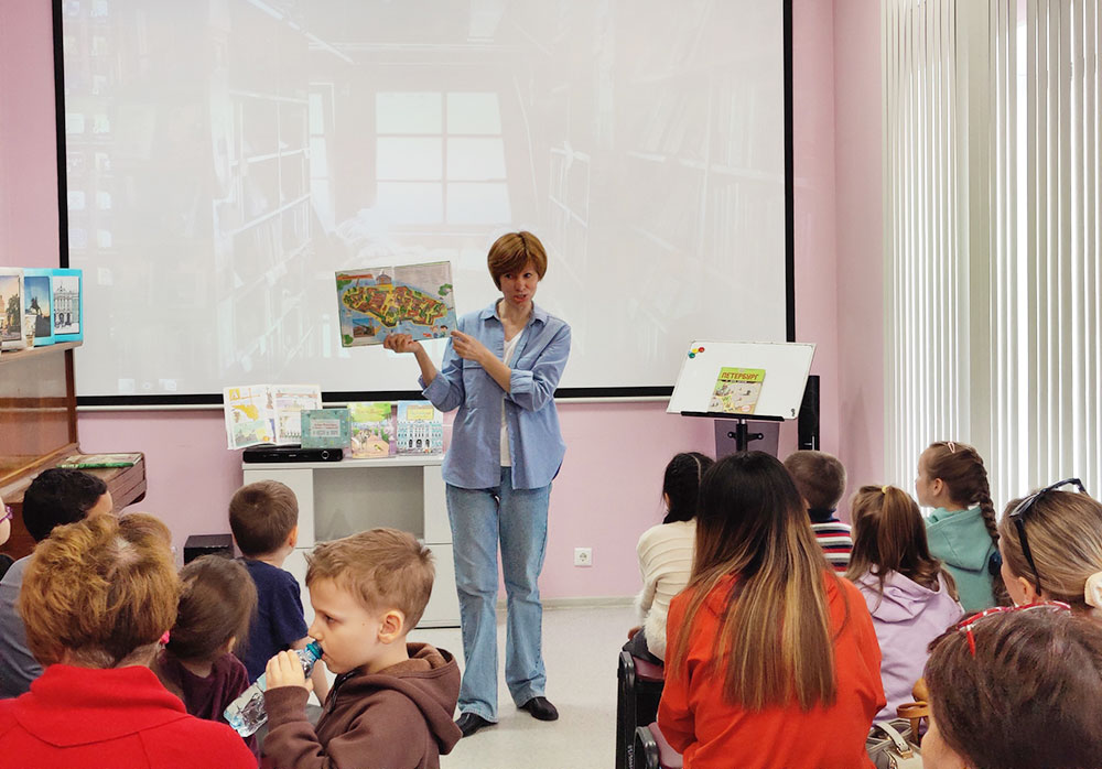 Далее участники мероприятия ответили на вопросы викторины "Путешествие через столетия", поиграли в игру-пазл "Петербургские достопримечательности" и прослушали обзор книжной выставки "Многоликий Санкт-Петербург".
