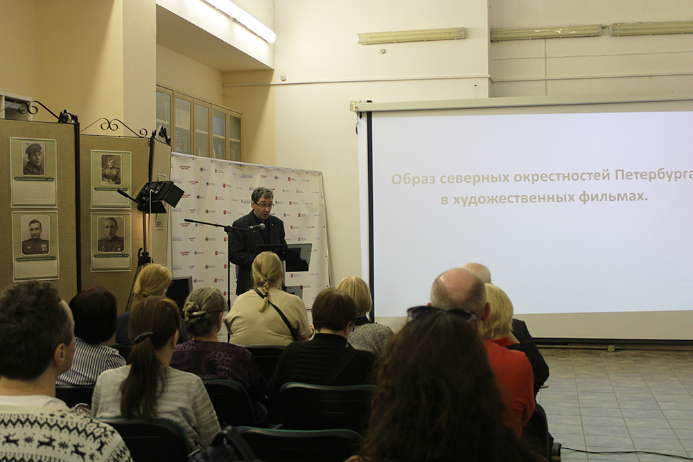 В заключении выступил историк и журналист Сергей Глезеров, который рассказал о тех фильмах, которые снимались в Парголово и Шувалово. Обзор, который представил Сергей Евгеньевич, охватывал период с 1930-х до наших дней. Интересный обзор касался Шуваловского парка, который являлся декорацией для множества кинокартин.