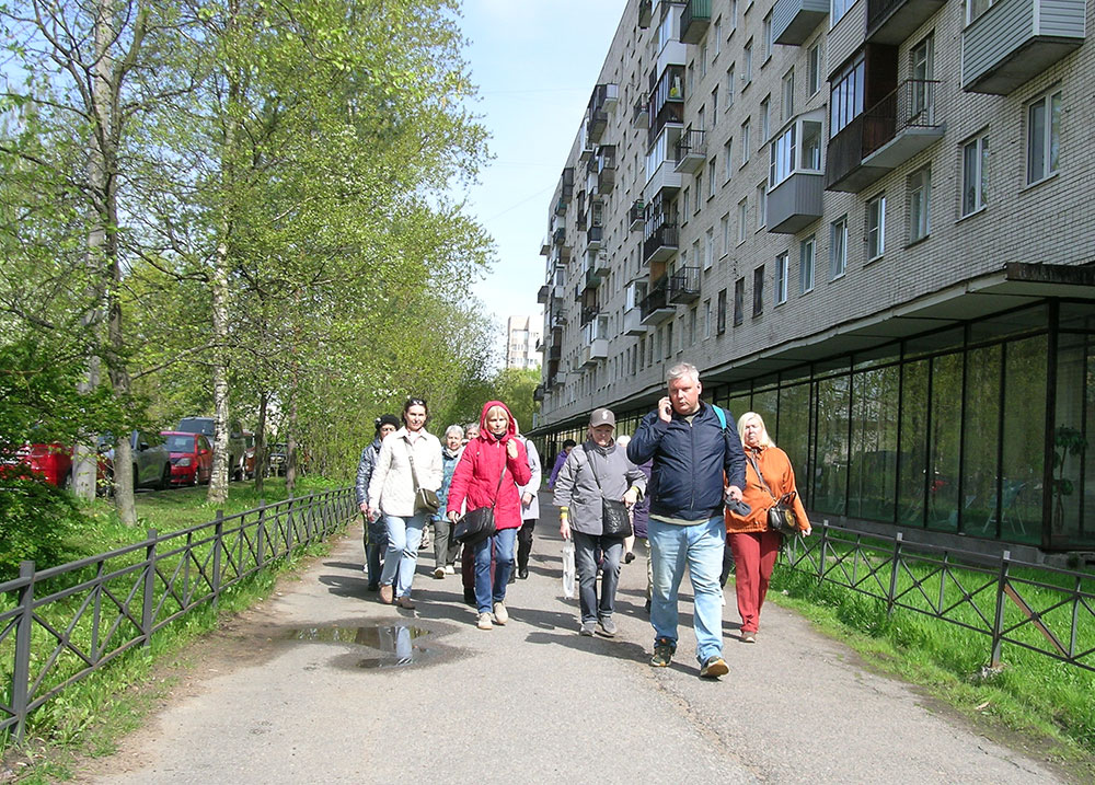После лекции и перерыва посетителей ждала прогулка по тем местам, где находились усадьбы. Читатели осмотрели сохранившуюся дачу Чернышева и то место, где когда-то была усадьба Ульянка. Прогулка помогла многим посетителям составить представление, где была усадьба Ульянка и как сегодня выглядит то место, где когда-то находились многочисленные ее постройки.