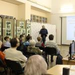 После перерыва, историк советской архитектуры Дмитрий Гусаров рассказал о мемориальных фонтанах, появившихся в нашем городе в 1945-1950-х годах. Эти фонтаны были посвящены победе советского народа в Великой отечественной войне. Данное выступление раскрыло очень интересный и малоизвестный факт городской истории.