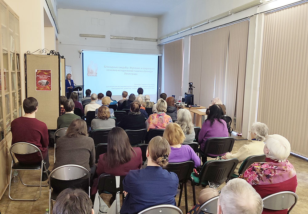 Второй доклад рассказывал о довольно редкой и интересной теме свадеб в блокадном Ленинграде. Тему представила Рылеева Валерия Павловна, руководитель исследовательского проекта "Блокадные свадьбы". Яркое и эмоциональное выступление познакомило зрителей с рядом биографий блокадных женихов и невест. Самое интересное, что некоторые из героев ещё живут среди нас.