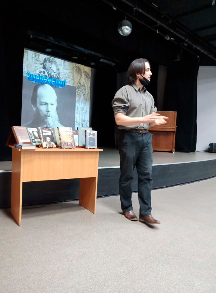 Посетители услышали рассказ о культовых экранизациях произведений Фёдора Достоевского, были показаны фрагменты художественного фильма "Идиот" (1951, режиссер А. Куросава). Зрители с большим интересом расспрашивали о фильмах, уточняли, какие произведения автора можно взять в нашей библиотеке.