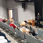 Библиограф нотно-музыкального отдела Н. А. Терещук рассказал о культовых экранизациях произведений Бориса Акунина, показал фрагменты художественных фильмов. Зрители с интересом расспрашивали о фильмах, уточняли, какие произведения автора можно взять в нашей библиотеке.