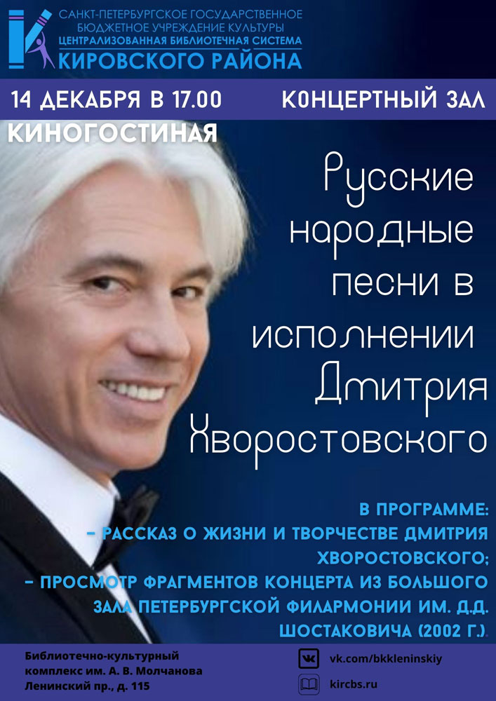 Киногостиная "Русские народные песни в исполнении Дмитрия Хворостовского" (0+)